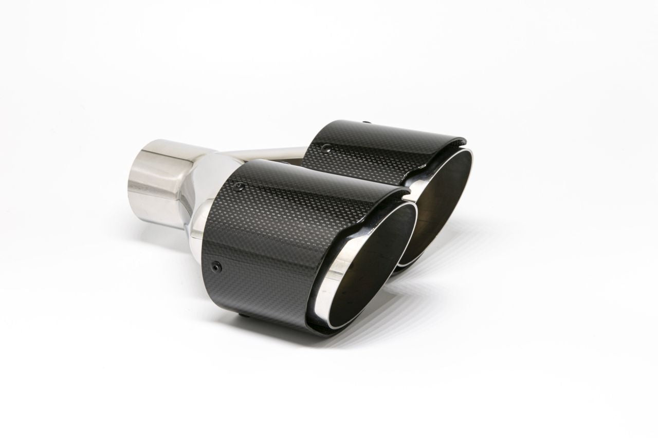 Enderør Kulfiber 2x100mm rund skarp skrå forskydning højre, sort Længde: 240mm