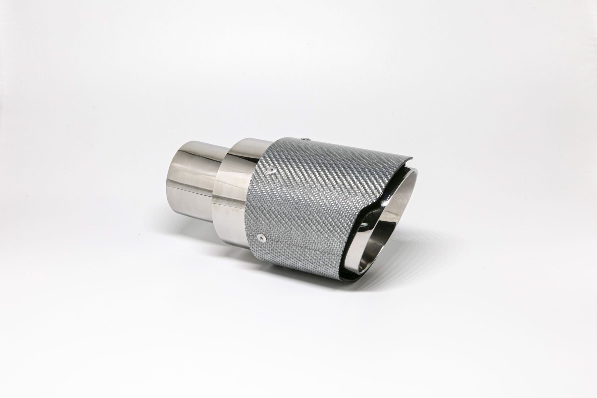 Enderør 100mm rund Kulfiber bred kant skrå sølv Længde: 190mm