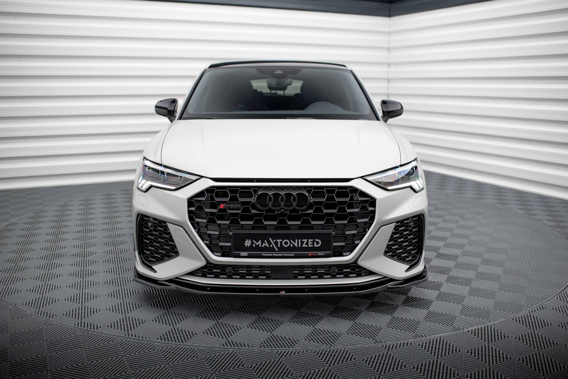 The tuning products by Maxton Design are used by customers from all over the world. The company concentrates its activities around the production of high-end splitters, spoilers, bumpers, side skirts, and diffusers. All the mentioned items serve as improvements to overall aesthetics and aerodynamics of a wide selection of cars. Aside from these optical tuning components the Maxton Design selections in abundant with smaller attachments, including wings, eyebrows, and frames for lights. One of the models that we offer such components for is Audi RSQ3 F3. Right now we wanted to present this V.2 front splitter. It is delivered fit for instant installation and exhibits a slick form.
