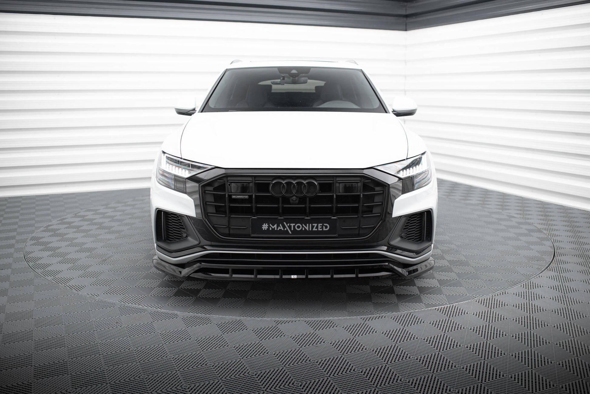 The front splitter installed in the Audi SQ8 / Q8 S-Line Mk1 will make the front axle of the vehicle more pressed, making an improvement of the stability and grip of the vehicle. Adding a front splitter to the vehicle will be especially felt durring fast driving. A neat tuning element will optically lower the height of the vehicle body, thanks to which the car will gain a sporty appearance and a modern character that will distinguish it from other cars on the street. . In addition at the manufacturer of Maxton Design can buy decorative tape in white or red.