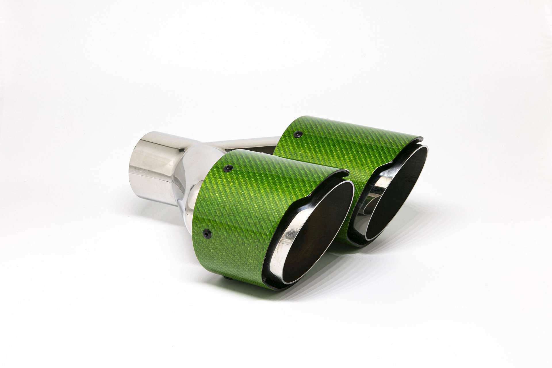 Enderør Kulfiber 2x100mm rund skarp skrå forskydning venstre, grøn Længde: 240mm