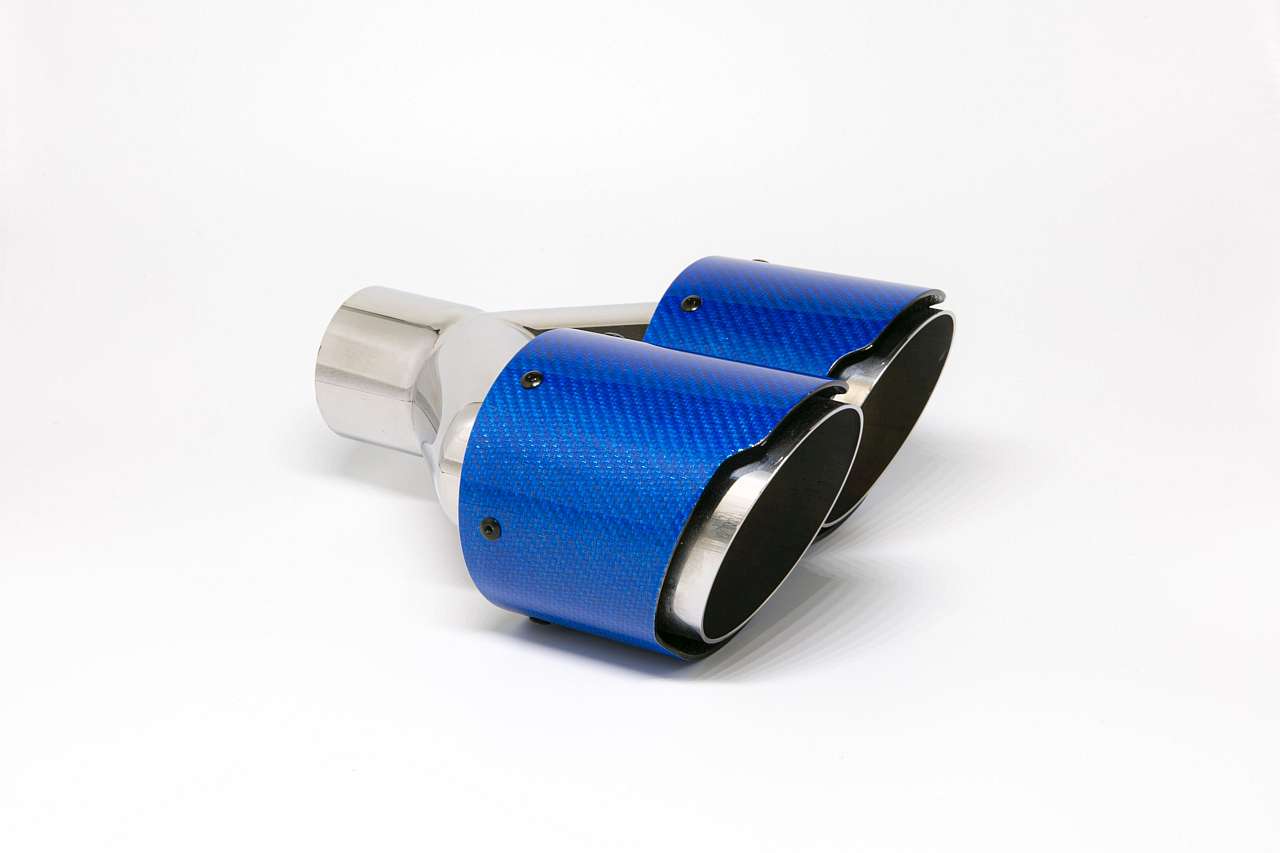 Enderør Kulfiber 2x100mm rund skarp skrå forskydning venstre, blå Længde: 240mm