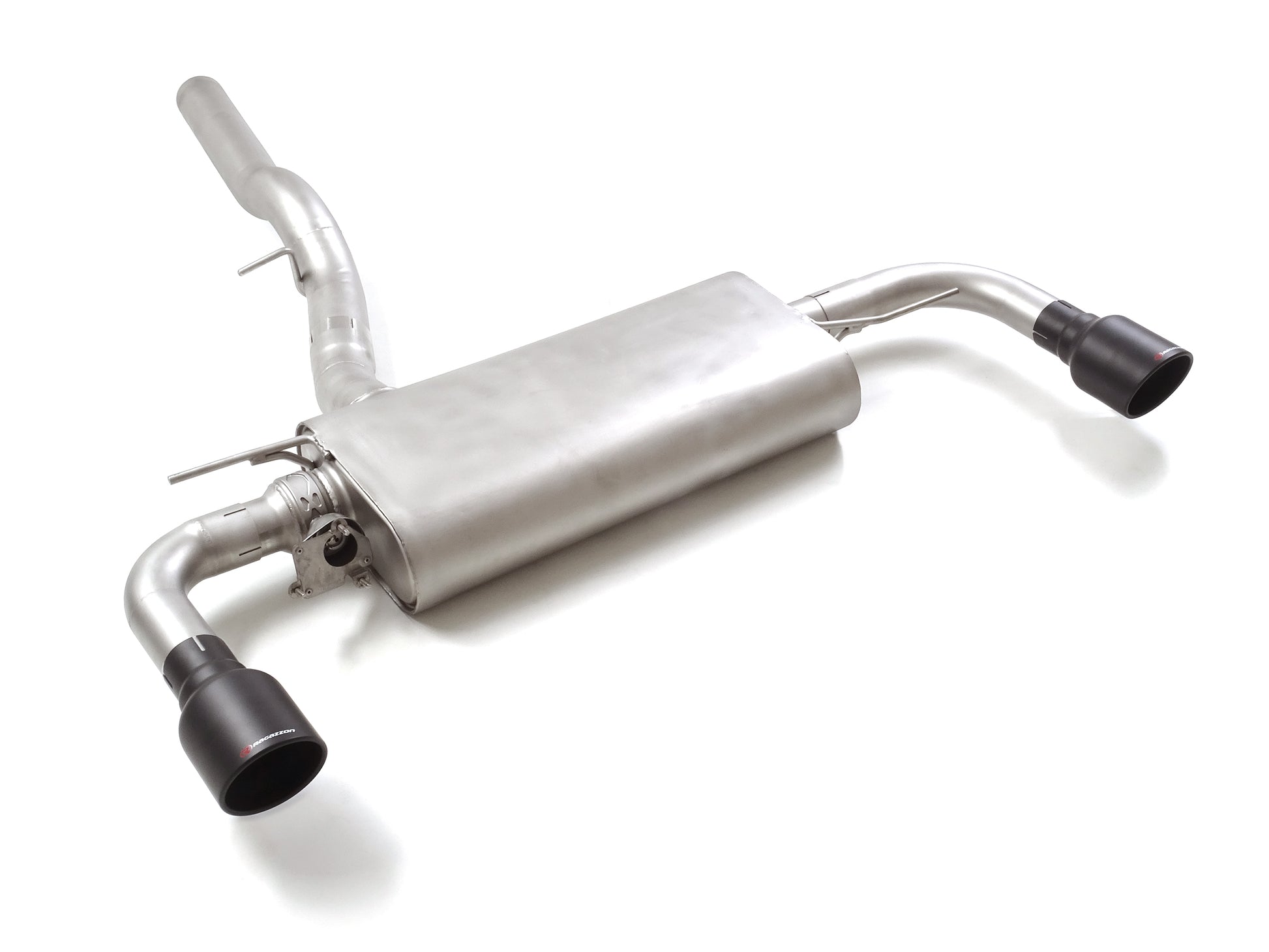 Rustfri stål bagpotte venstre/højre hver med runde Sportline Sort enderør 102 mm med integreret ventil. Ventilen styres af OEM ventilmotor. Overdimensioneret diameter 76 mm