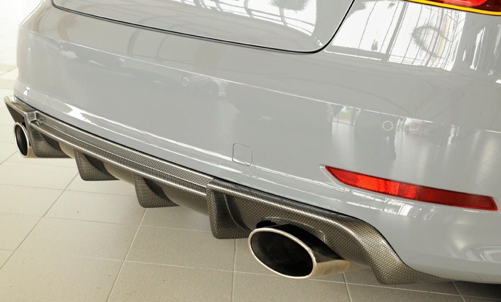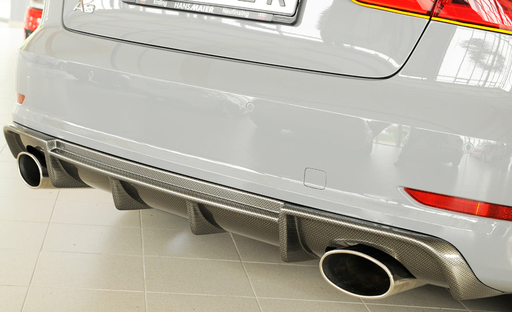 Til enderør V/H, (152x95mm oval), ABS-plast, kulfiber-look, til biler med S-Line, Ikke til Audi A3 / S3 (8V) 3-dr. (hatchback 8V1), 5-dr. (sportback 8VA)!