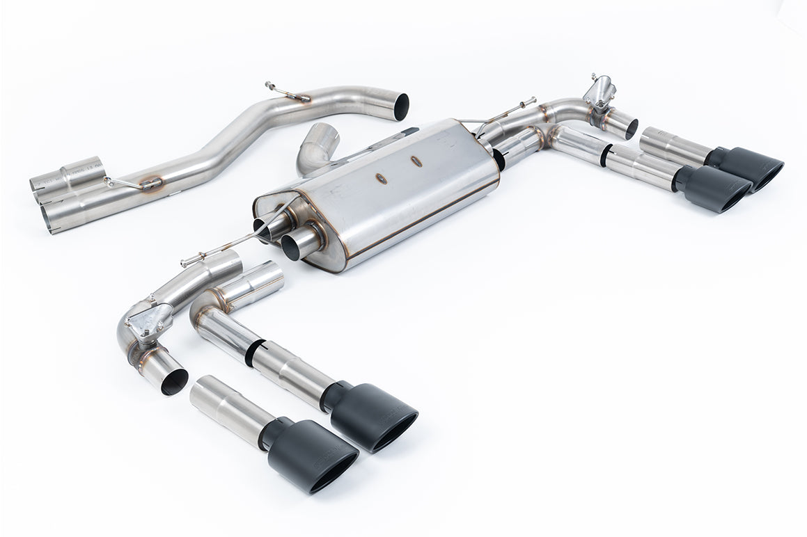 80mm Ej-Lyddæmpet Cat Back med Cerakote sorte ovale enderør (Højere). Rør diameter: 80mm. Kun til modeller med benzin partikelfilter