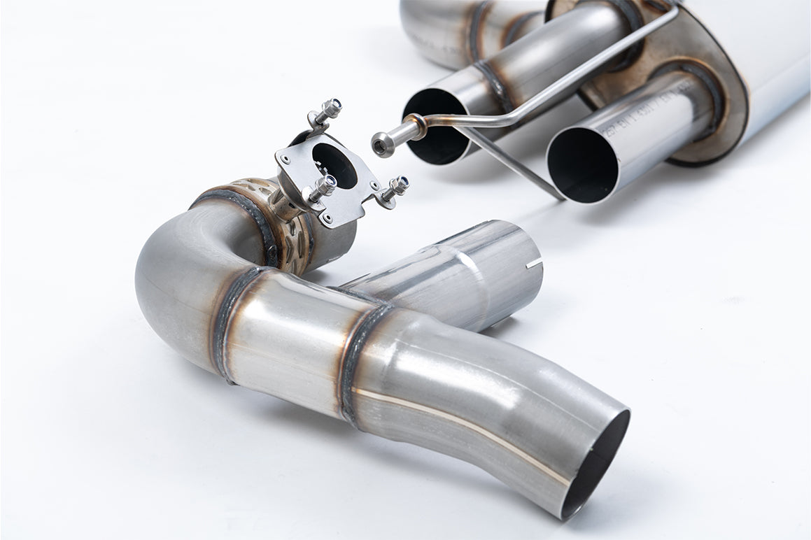80mm Race Ej-Lyddæmpet Cat Back med Cerakote sort enderør (Højest). Rør diameter: 80mm. Kun til modeller med benzin partikelfilter