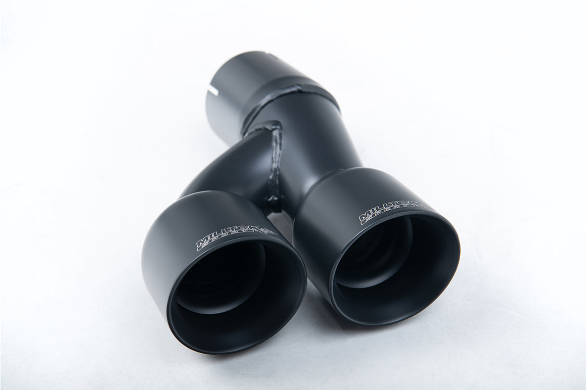 Lyddæmpet dobbelt Cerakote sort enderør. Twin 80mm GT80, Rør diameter: 70mm