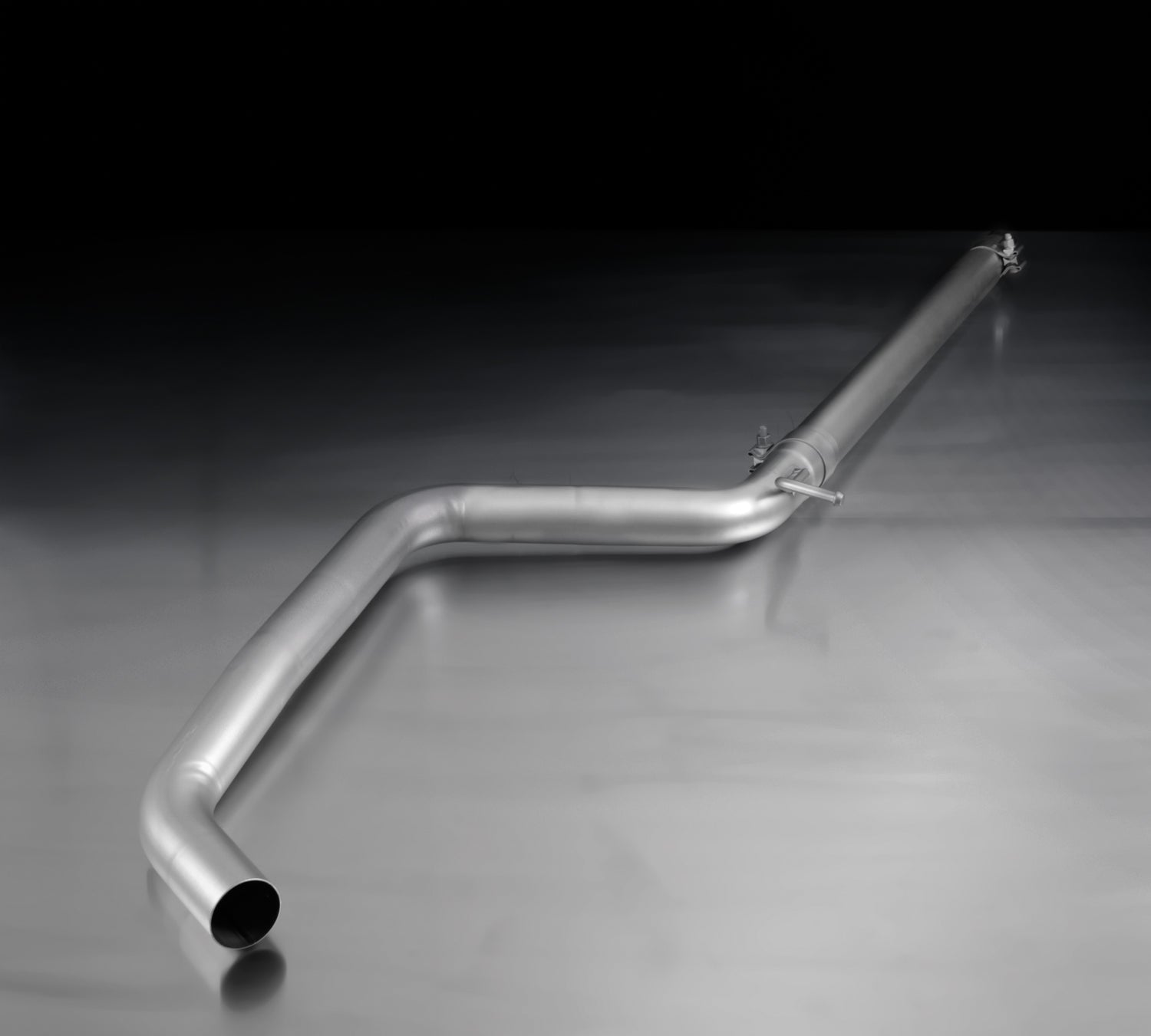 Ej-lyddæmpet RACING cat-back sektion. Erstatter original forreste lyddæmper, kun til 1.4l TFSI. Passer kun som komplet system med REMUS Sportsudstødning. Ej E-type godkendelse