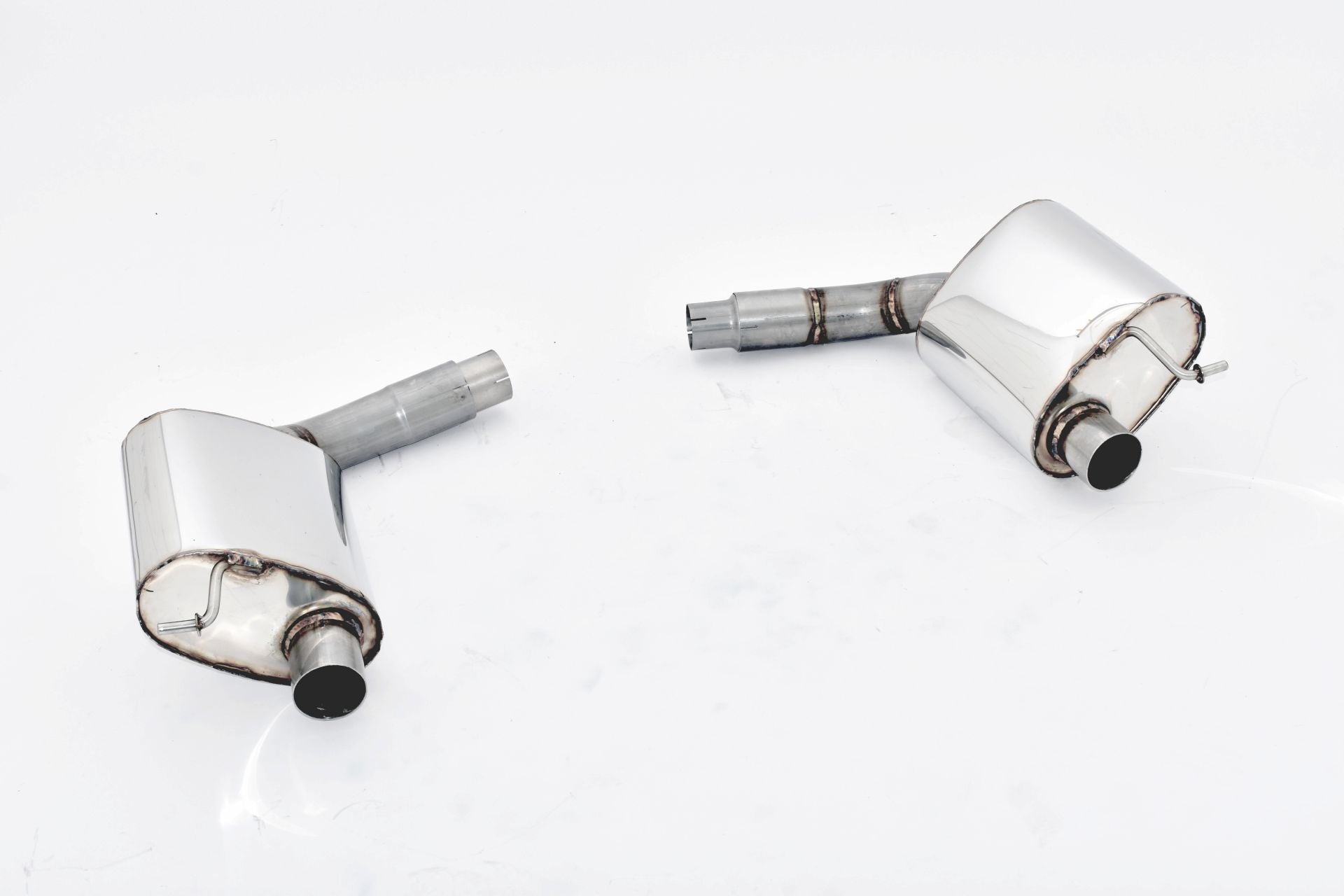 2x76mm bagpotte med enderør venstre & højre. Rustfrit stål, Med E-type godkendelse. Ej enderør, med rør til original enderørsskærm