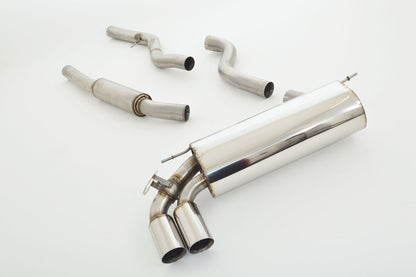 76mm catback-system. Rustfrit stål, Med E-type godkendelse. Kun til N20 motor. Originalt spjæld kan benyttes. Passer også til M-Pakke diffuser